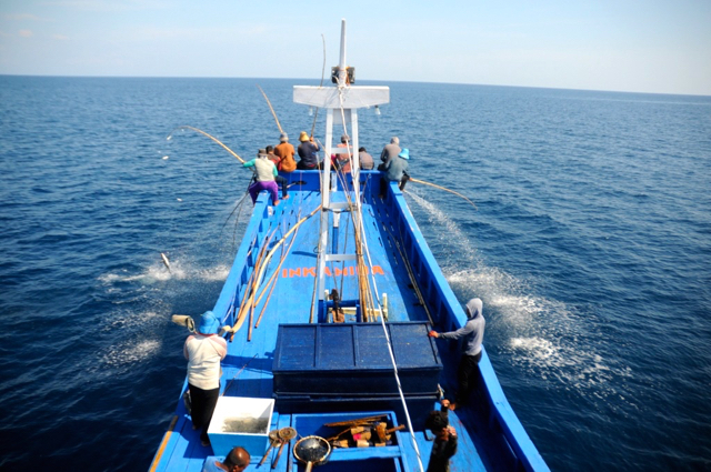 “Yang harus dimengerti, rombongan cakalang itu ada juga yang menemani. Mereka ada penjaga. Jadi waktu buang umpan, kita itu minta izin juga.”