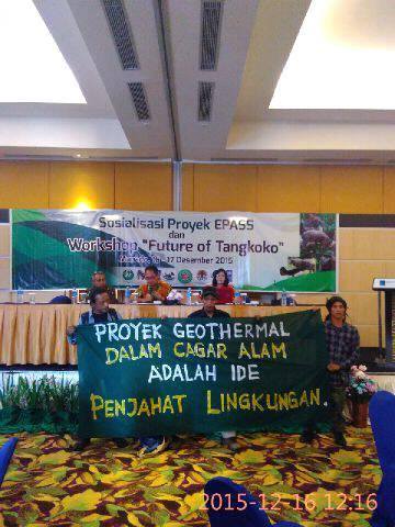 Dalam workshop itu, aktivis tunas hijau melakukan pembentangan spanduk yang berisi protes terhadap wacana pembangunan di Cagar Alam Tangkoko. Dikatakan Cindy Samiaji, aksi itu spontan dilakukan karena sudah sekitar seminggu mendengar isu terkait proyek geotermal di Cagar Alam Tangkoko.