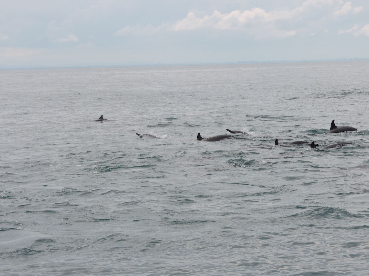 Seperti yang dilakukan Jhon. Ia membawa kami pada spot tempat ikan lumba-lumba bermain. Dari kejauhan, nampak rombongan ikan yang akrab dengan manusia itu bergerombol. Ketika perahu kami mendekat, lumba-lumba itu seolah sadar ada yang mereka melihat, lantas memamerkan atraksinya sembari meloncat. Sensasi melihat langsung atraksi lumba-lumba liar di Samudera Pasifik sungguh mengagumkan.