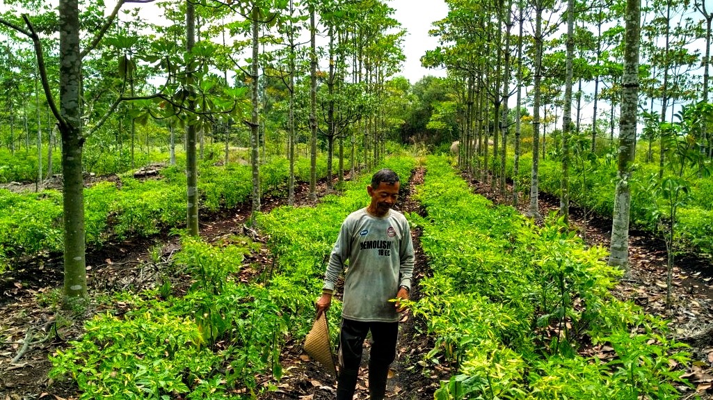 Berbagai tanaman sayur tumbur subur di lahan seluas 1,75 hektar di kawasan Kalampangan, Palangkaraya. Ada cabe, bayam, juga jagung. Selain sayur mayur, di lahan gambut itu juga tumbuh beberapa tanaman keras lain seperti pisang, karet, serta jenis buah-buahan seperti rambutan dan jeruk. Konsepnya agroforestri, tanaman keras bersanding dengan tanaman jangka pendek.