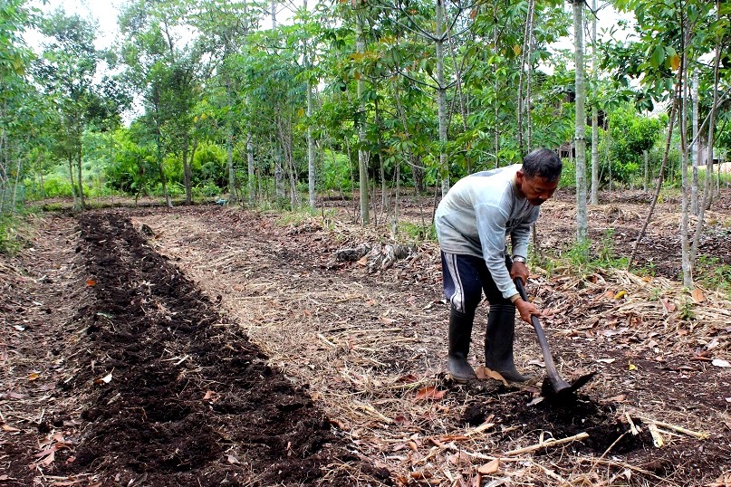 “Dulu masing-masing diberi jatah tanah dua hektar. Seperempat untuk perumahan, satu hektar tiga perempat untuk lahan usaha. Waktu itu masih banyak puing-puing kayu sisa kayu yang besar. Sedikit demi sedikit saya kumpulkan,” jelasnya pada Mongabay Indonesia akhir Agustus lalu.