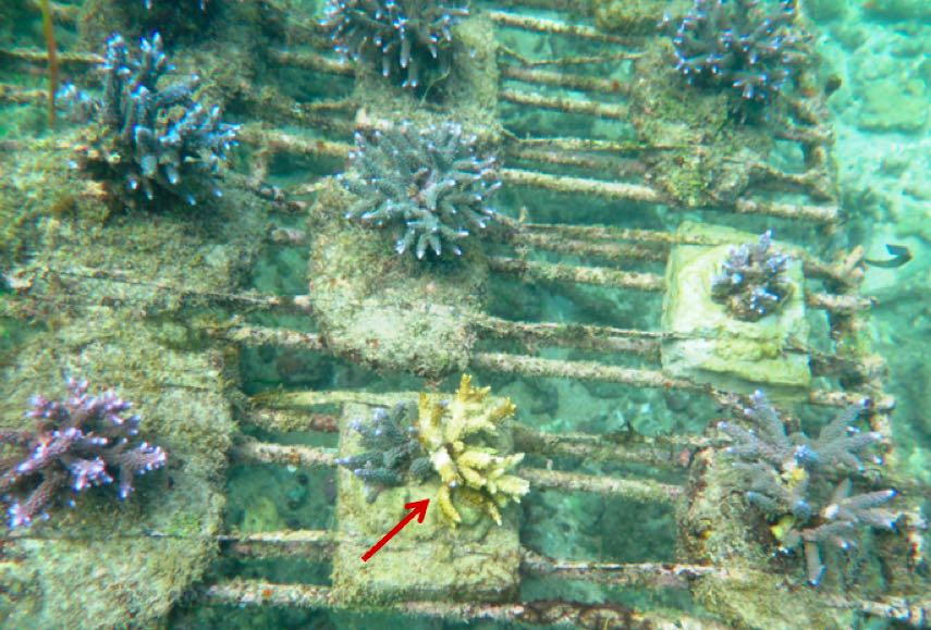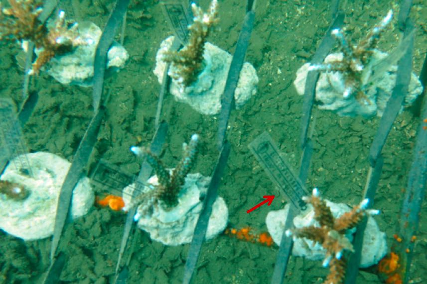 Karang yang telah diadaptasikan di lokasi budidaya tersebut, lalu diberi label (tagging). Pada tagging terangkum informasi tentang nama jenis, kode perusahaan dan bulan penanaman.