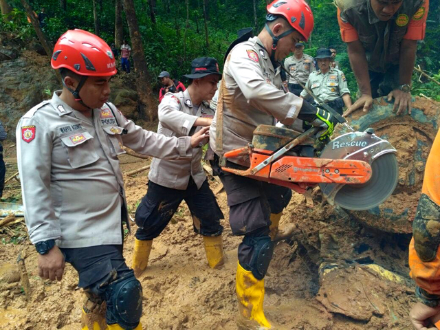 Di tengah guyuran hujan dan peralatan seadanya, korban berhasil dievakuasi dari dasar jurang sisi kanan jalan karena dihantam material tebing saat melaju dari arah Sumbar menuju Riau.