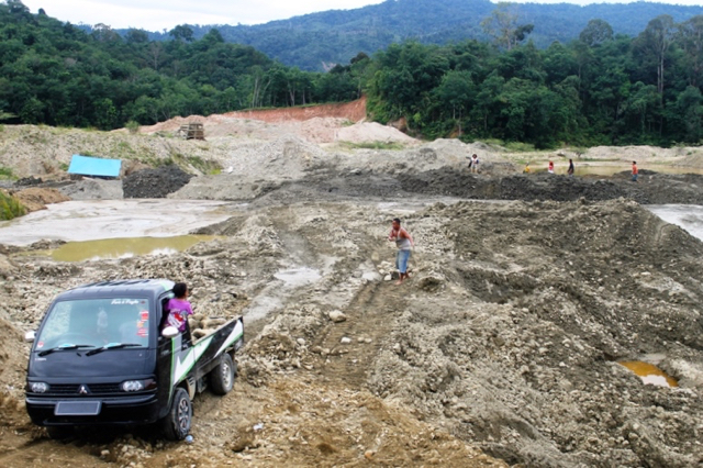 Di Bombana, Sulawesi Tenggara, misal, salah satu titik penambangan emas rakyat cukup masif. Pekerjaan mereka lakukan manual, mulai menggali tanah, mengambil material sampai mendulang di kubangan atau sungai.