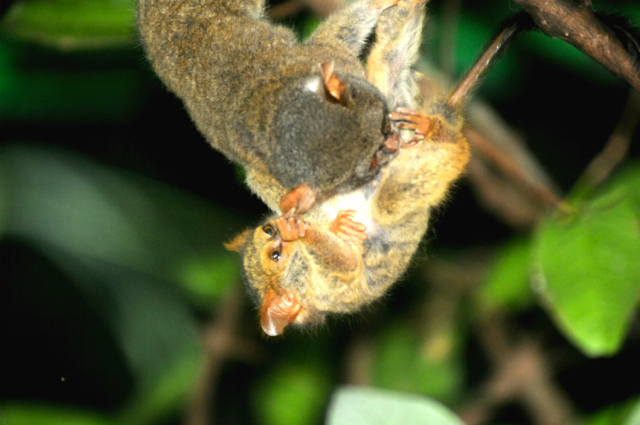 “Kalau kencing, tarsius ini berjalan mundur seperti mencakar-cakar batang dahan yang ditempati. Itu untuk menjaga teritori dan kawasan.”
