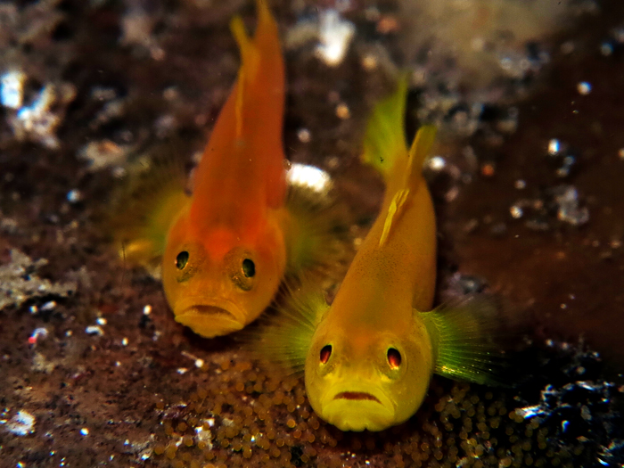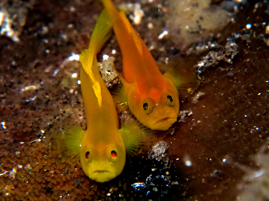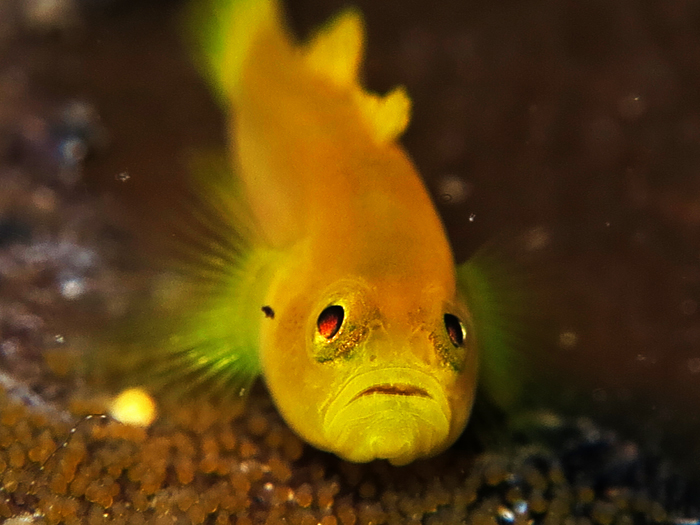Sebaliknya, apabila keduanya berkelamin jantan, maka goby kuning yang mempunyai ukuran lebih kecil, akan merubah kelaminnya menjadi betina. Sang jantan akan membuahi telur dan menjaganya sampai usia menetasnya. Telur akan memperlihatkan bentuknya pada hari ke 40.