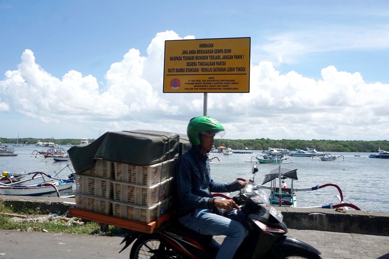 Misalnya terdengar sekitar dua menit di pesisir Kedonganan, area kampung nelayan dan restoran-restoran ikan khas Jimbaran. Namun warga terlihat biasa saja, tak ada yang merespon sirine dengan menjauhi laut misalnya. Indra menyebut karena uji sirine rutin tiap bulan untuk memastikan sirine bekerja dan tidak ada kegiatan simulasi.