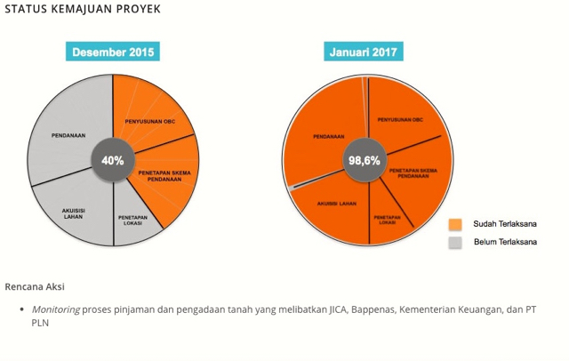Saat ini, proses tender dan pembebasan lahan berlangsung. Dalam catatan Komite Percepatan Penyediaan Infrastruktur Prioritas proyek Rp20 triliun ini mulai konstruksi 2017 dan rencana operasi 2019.
