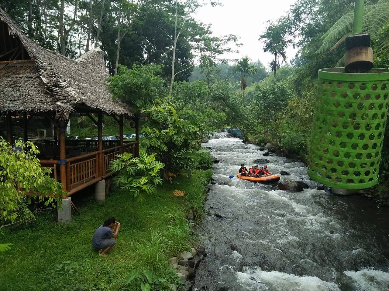 Sebuah jembatan menghubungkan sungai dan kawasan hutan adalah spot asyik melihat suasana rafting. Usaha ini disebut dimulai dengan satu perahu seharga Rp12 juta dan kekompakan warga mengembangkan secara kolektif.