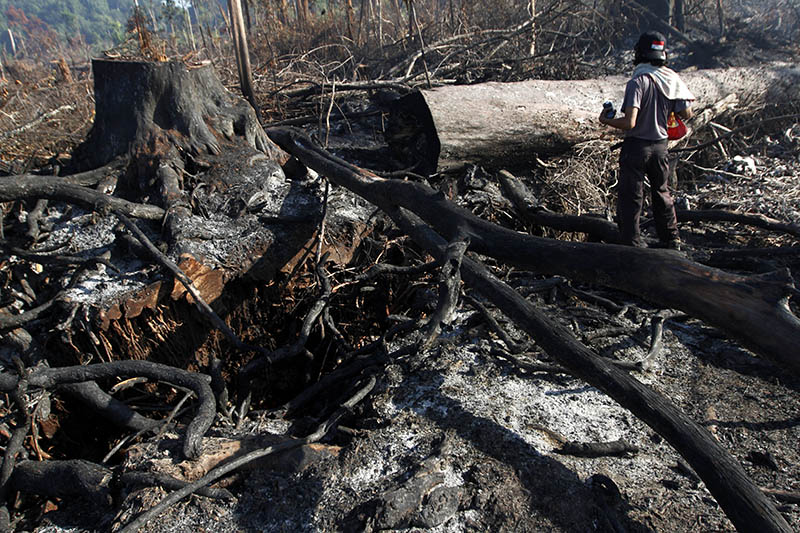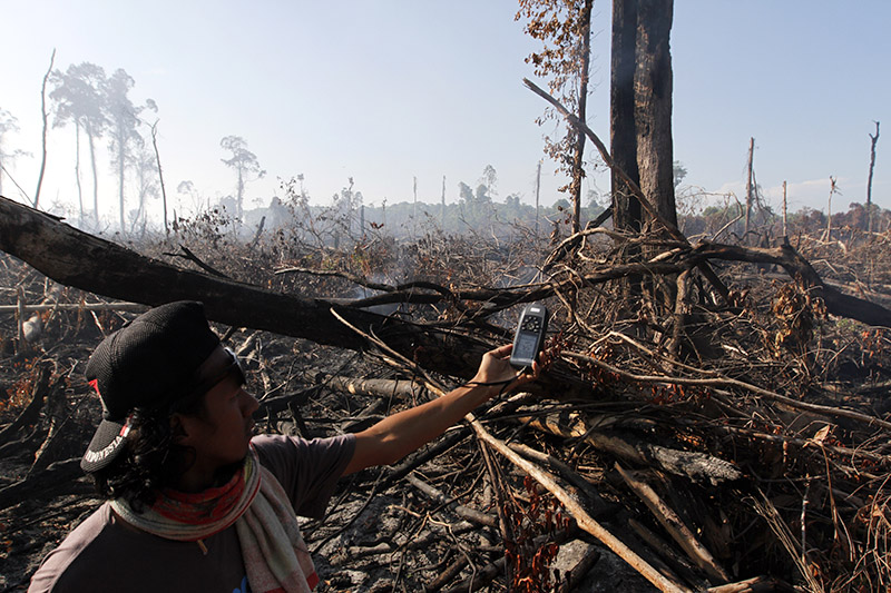 Sapto secara tegas mengatakan, pembakaran hutan gambut dilakukan mafia lahan yang ingin merambah hutan konservasi tersebut sebagai perkebunan. Sekitar 3.000 hektare Suaka Margasatwa Rawa Singkil hancur lebur karena perambahan yang dilakukan terang-terangan beserta alat berat.