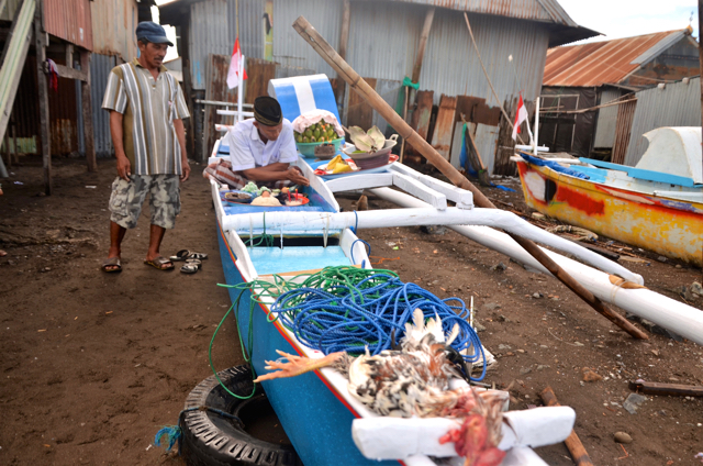Karena terbuat dari bahan fiber, pemindahan perahu ke laut tak perlu waktu dan tenaga yang banyak. Jarak antara tempat ritual dan garis pantai hanya beberapa puluh meter.