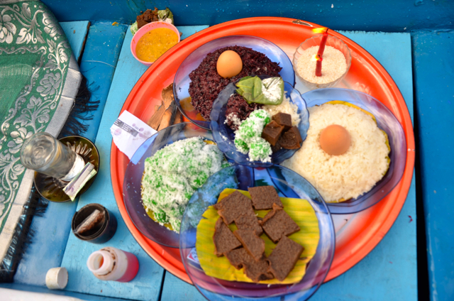 Dia contohkan, makanan umba-umba (onde-onde), terbuat dari beras ketan dan berbentuk seperti bola pingpong berisi gula merah dan kepala muda.