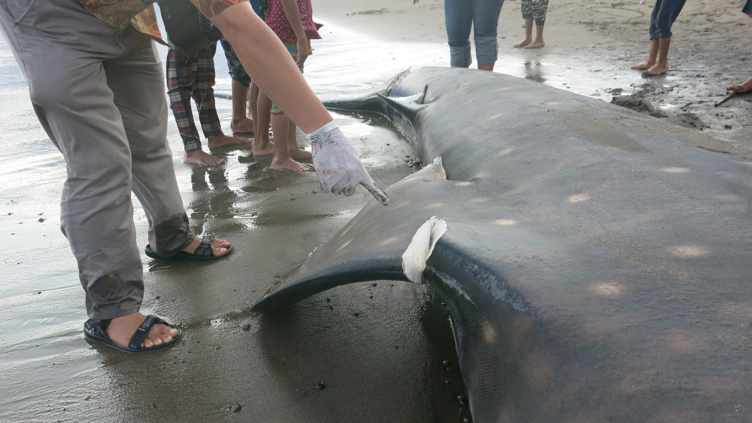 Misalnya jika menemukan terdampar hidup, warga atau tim evakuasi diminta tidak menyentuh mata, sirip, dan lubang nafas. Tidak menuangkan air ke lubang nafas, memastikan basah dengan menggali pasir sekitarnya dan diisi air, jika sulit menutup sebagian badan dengan handuk basah, dan mengurangi terpaan matahari langsung.