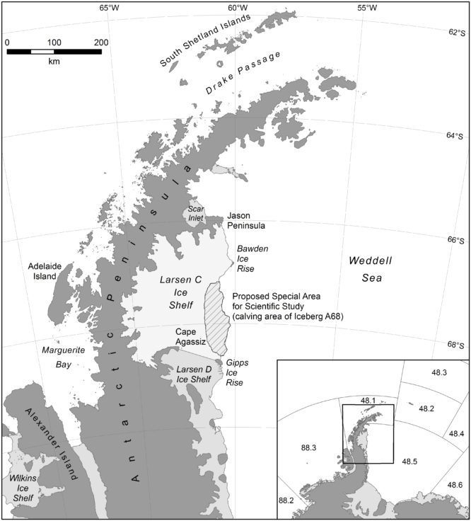 Kawasan yang lapisan esnya terlepas ini dinamai A68, dan menurut para ahli akan menjadi kawasan ‘harta karun kehidupan’. Para ilmuwan pun mendorong kawasan ini untuk ditetapkan sebagai Special Area of Scientific Study.