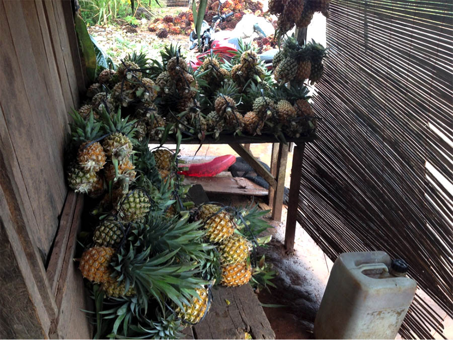 Berapa besar penghasilan dari berkebun nanas? “Saat ini belum diketahui secara pasti. Para petani hanya menanam, misalnya, menanam seribu bibit bukan berdasarkan luasan. Mungkin kalau sudah tertata, semuanya dapat dihitung secara pasti. Ini kan baru memulai, dan sudah ada yang memanen,” katanya. Nanas yang dijual petani saat ini berkisar Rp1.000 hingga Rp1.500 per buah.