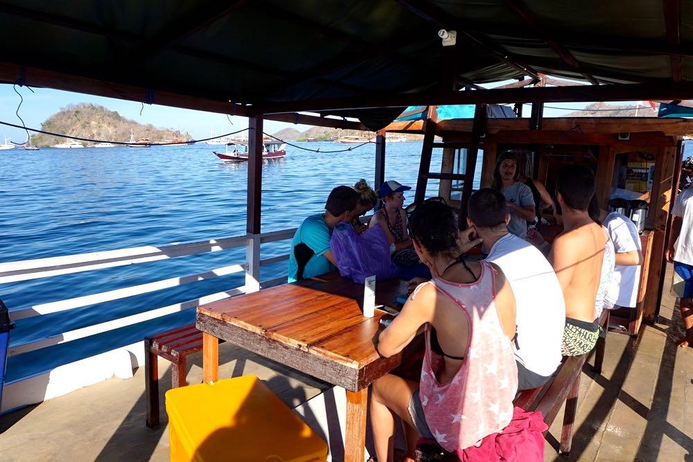 Tak hanya melihat komodo di darat, juga banyak wisatawan yang ingin menemui hiu dan pari manta di laut. “Mungkin populasi manta [sekarang] berkurang, dulu banyak sekali bisa kita lihat setiap hari,” katanya. Sebuah area kadang padat. Di permukaan laut aktivitas snorkeling dan di bawah diving. Bisa jadi kepadatan aktivitas laut ini mengurangi kenyamanan satwa.