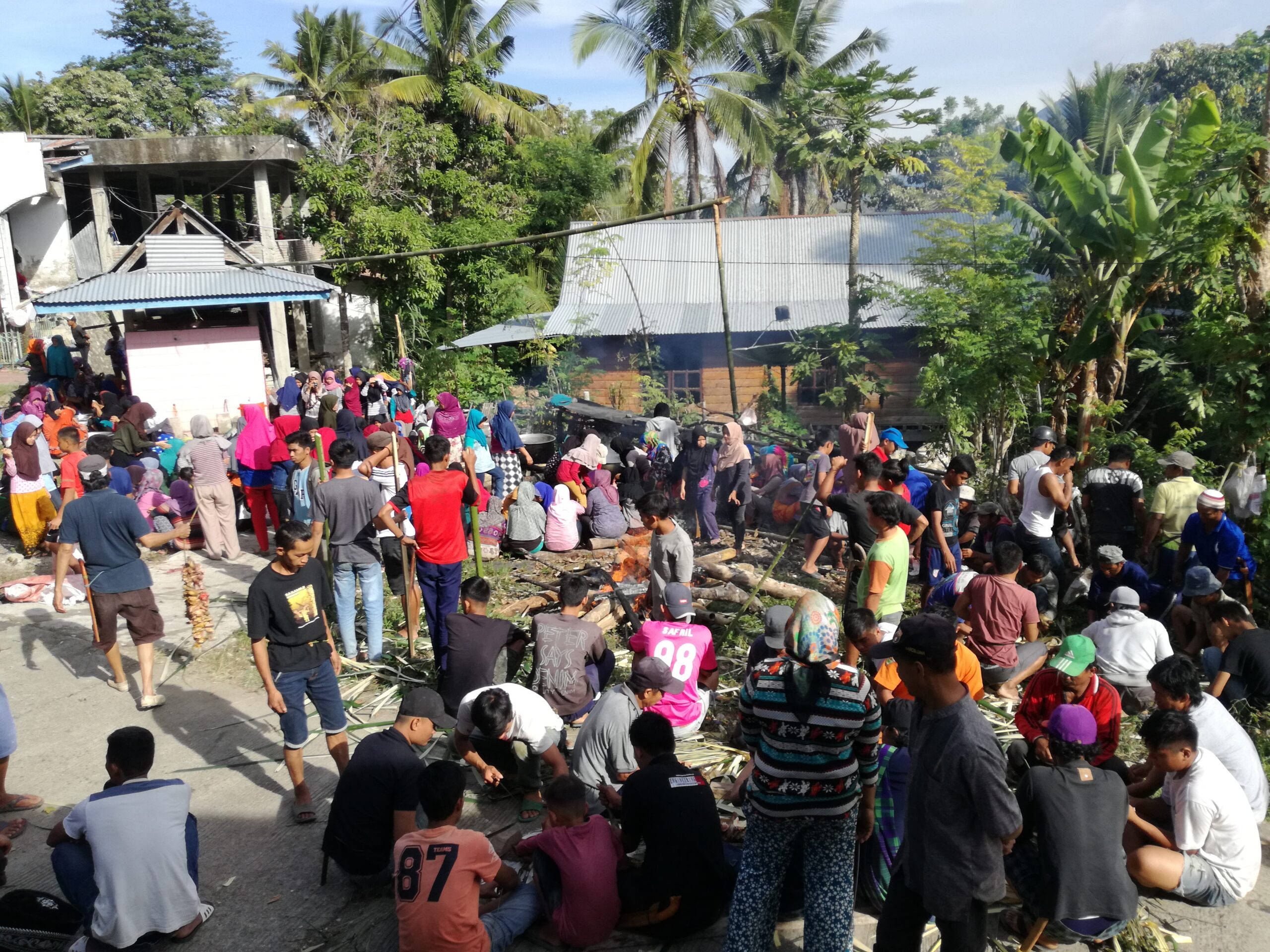 Pagi-pagi, halaman masjid tua telah penuh dengan kendaraan motor dua roda. Berteduh di bawah sebuah pohon beringin besar berusia ratusan tahun. Orang-orang datang dari berbagai penjuru kampung, membawa beragam macam bahan makanan. Ada yang membawa belasan ekor ayam, songkolo (nasi dari beras ketan), nasi putih dan pisang bertandang-tandang. Jika laki-laki membawa parang yang diselipkan di pinggang, maka perempuan membawa pisau dapur, panci dan peralatan dapur lainnya.