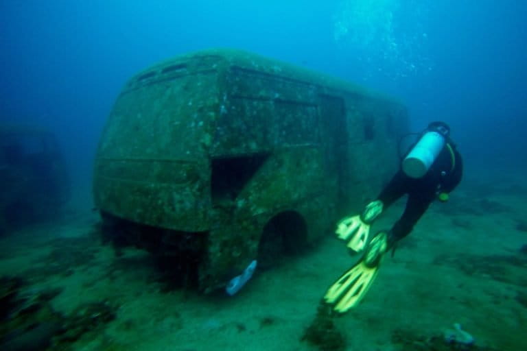 Menurut informasi bus ini diitenggelamkan bulan Agustus 2016 sebagai artificial reef dan destinasi wisata selam. Saat ditenggelamkan, sebelumnya mesin dan tanki bahan bakar motor dan bus telah diambil terlebih dahulu agar sisa oli dan minyak tidak mencemari perairan.