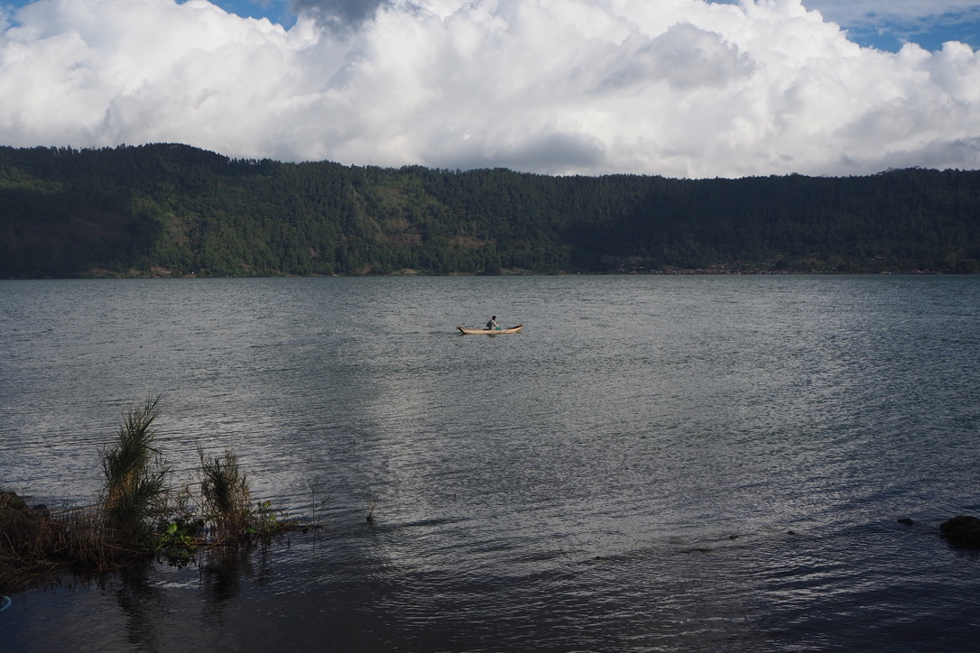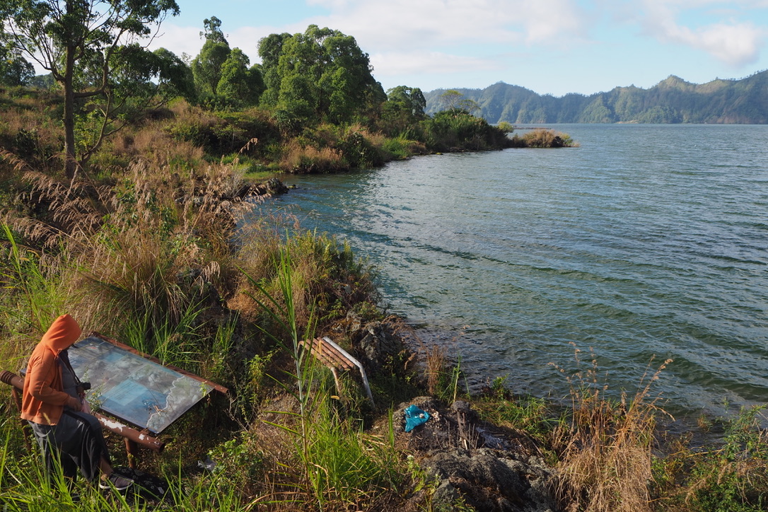 Namun, tentu saja petang itu tidak ada Julia Roberts di sana. Hanya papan penunjuk dari pengelola Batur Global Geopark sebagai bukti. Selebihnya, tempat itu terlihat masih alami. Tidak ada jalan khusus. Tidak ada penataan khusus. Pengunjung bisa duduk-duduk di sana menikmati kecipak bunyi air danau atau memancing untuk menghilangkan galau atau mengobati kepenatan sehari-hari, layaknya Julia Roberts ketika berakting di sini.