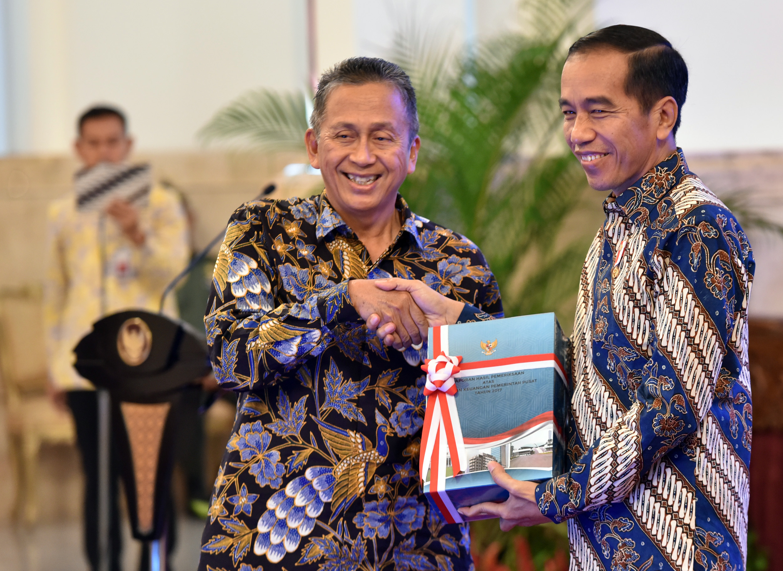 Badan Pemerika Keuangan (BPK) telah memberikan Laporan Hasil Pemeriksaan (LHP) atas Laporan Keuangan Pemerintah Pusat (LKPP) Tahun 2017 kepada Presiden Joko Widodo (Jokowi) didampingi Wakil Presiden Jusuf Kalla di Istana Negara, Jakarta, Senin (4/6/2018) pagi.