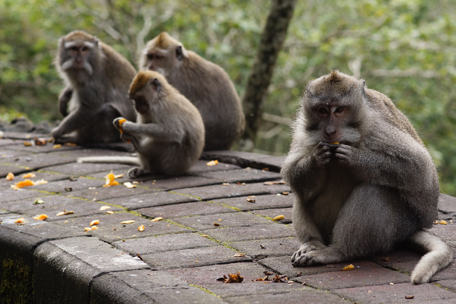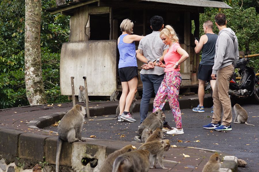 Adalah Luh Martini, seorang panjaja makanan untuk diberikan pada monyet, menuturkan kepada Mongabay, jika para monyet ini terus makan semua makanan yang diberikan kepadanya. Padahal, wisatawan selalu datang silih berganti dalam jeda waktu yang sangat rapat. Bahkan jika sedang musimnya, bisa terlihat menumpuknya turis di pinggir jalan untuk memberi makan si monyet ekor panjang.