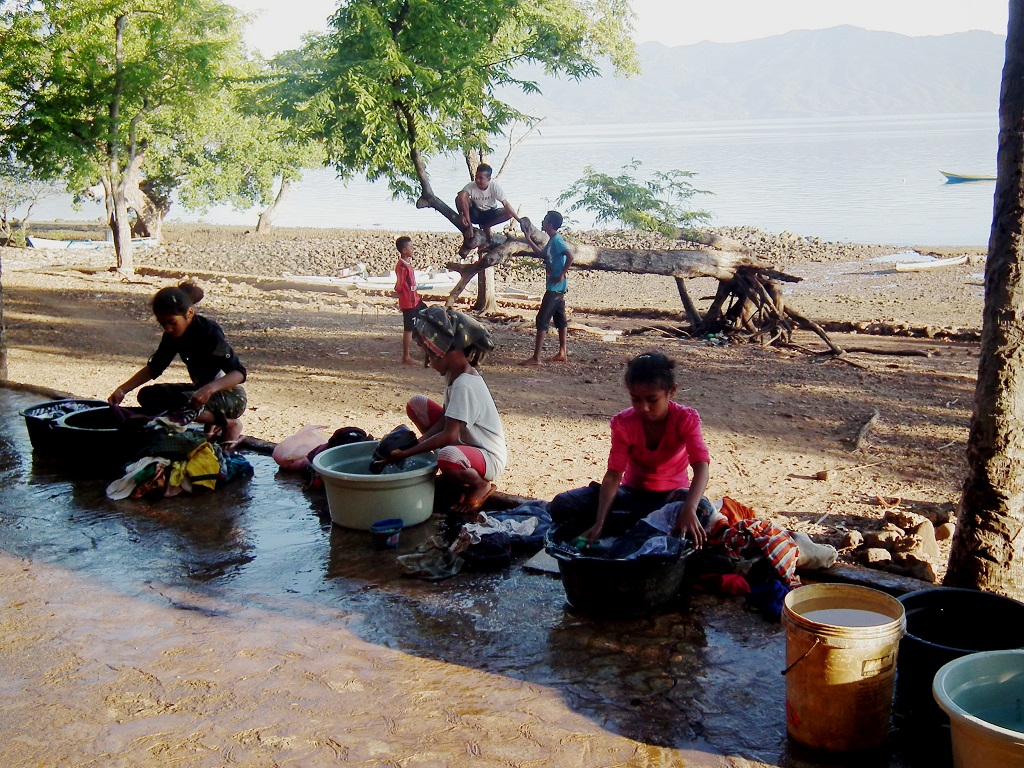 Setiap pagi dan sore, aktivitas mencari air menjadi pemandangan biasa di desa Balawelin I, Balawelin II, Nusadani dan Daniwato antri mengambil air di sumur air asin di pesisir pantai dan pipa air yang disalurkan dari sumur bor.