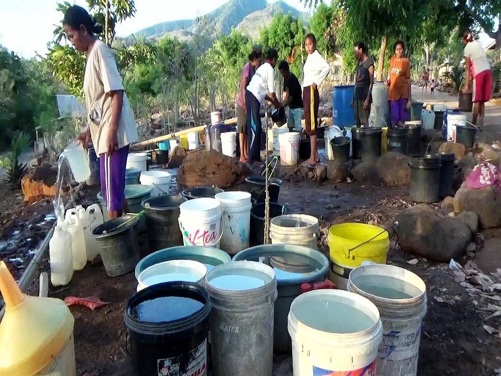 “Sudah sejak dulu kami susah air dan kalau tidak ambil air sumur atau mengandalkan air hujan, kami mengantri mendapatkan air yang keluar dari pipa yang disalurkan dari sumur bor di desa kami,” terang Veronika Djawan, pada Jumat (13/7).