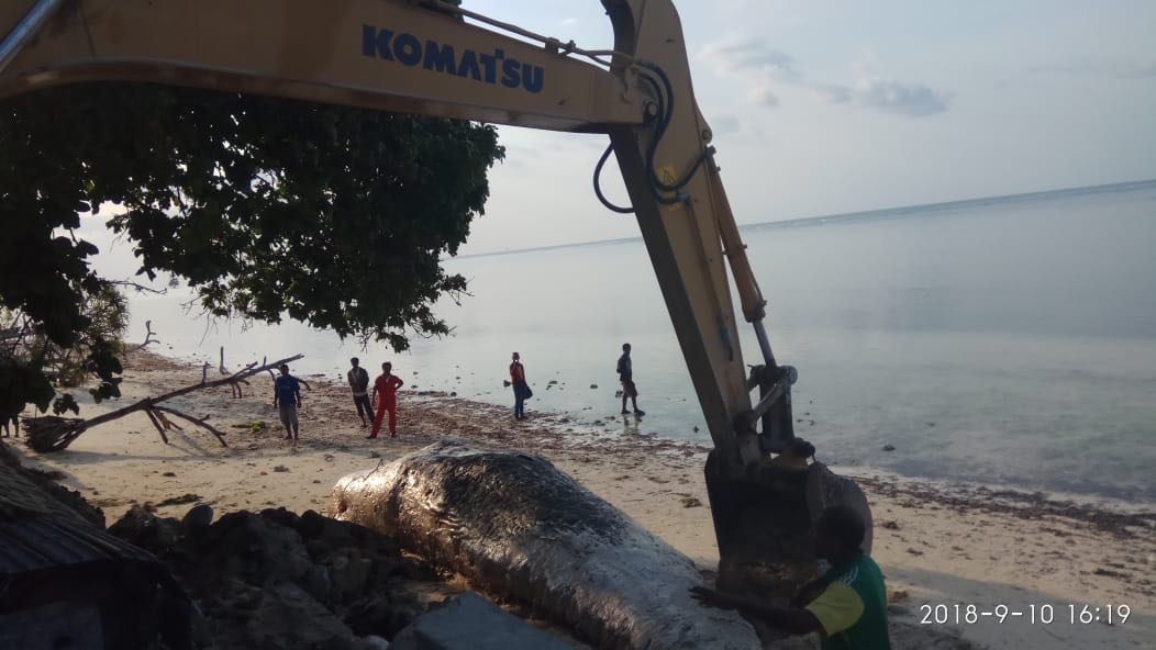 “Dari koordinasi, tim pada awalnya ingin menenggelamkan bangkai paus di perairan yang agak jauh dari Desa Pante Deere, tetapi masyarakat minta bangkai dikubur agar tulang belulang nantinya bisa diambil lagi dan akan dipajang di museum untuk edukasi,” kata Permana.