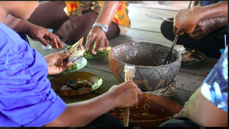 “Dulu kalau orangtua putar papeda di sempe, semua anak dipanggil datang tanpa terkecuali. Mereka duduk lingkar. Mereka makan papeda dari satu sempe ini, mereka ambil ikan dan colo kuah di satu hote.”