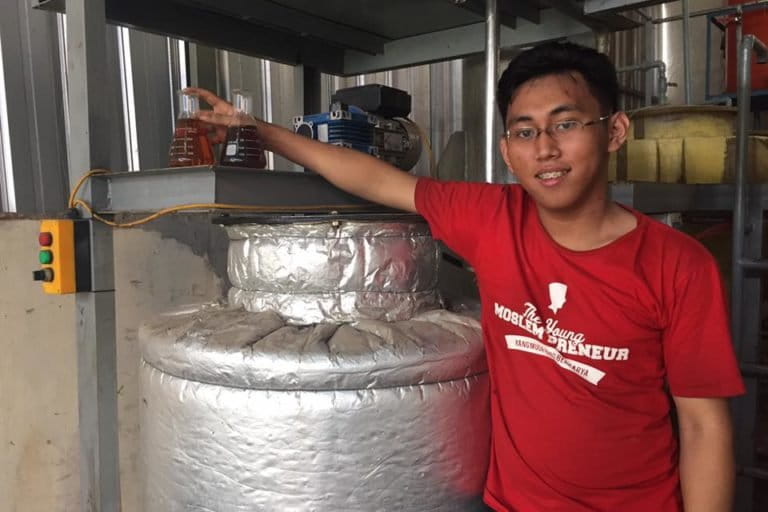 Sebanyak 30 liter jelantah menghasilkan 30 liter biodiesel. Cara kerja sederhana. Singkatnya, jelantah disaring kasar, saring kembali dengan sangat halus pakai pompa. Kemudian menguji tingkat keasaman (kalau tinggi diturunkan sampai zat asam angka satu), lalu ditampung. Setelah itu panaskan dalam reaktor (alat proses–alat reaksi alat utamanya).