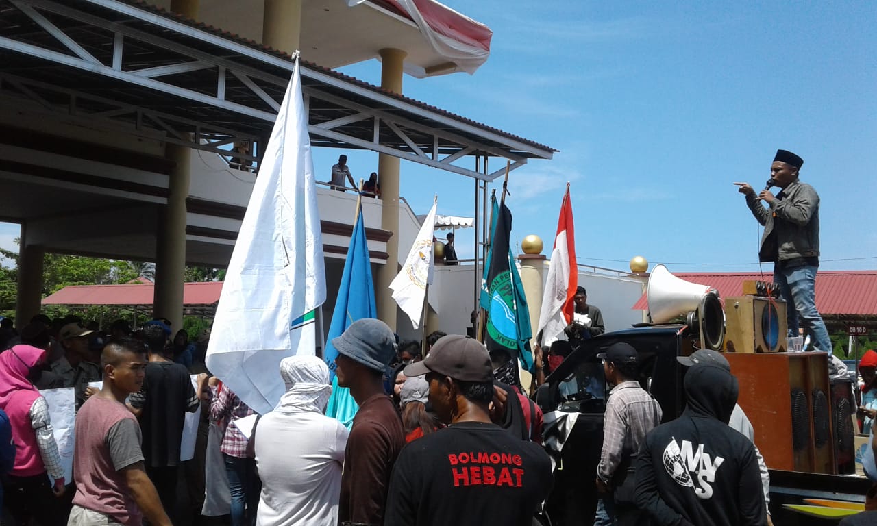 Aliansi Mahasiswa Bolaang Mongondow Raya (Ambor) menggelar unjuk rasa di kantor Bupati Bolaang Mongondow, Sulawesi Utara, Kamis (22/11/2018). Dalam aksi itu, mereka menyatakan penolakan terhadap rencana pengembangan kelapa sawit di kecamatan Lolak.