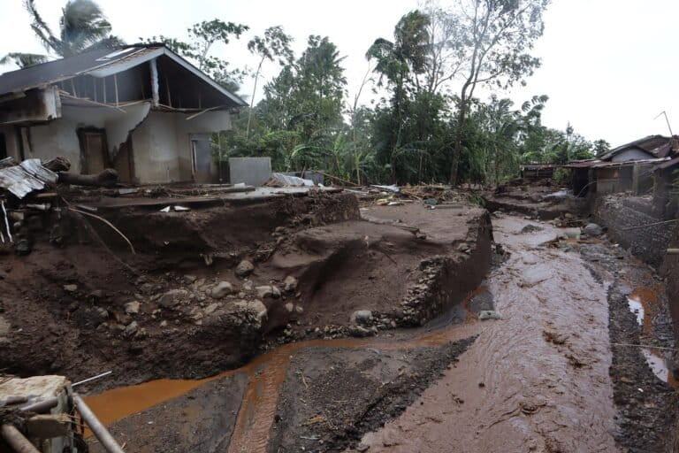 “Selama tujuh tahun tinggal di sini, banjir disertai lumpur baru pertama kali terjadi. Air limpasan begitu deras hingga menjebol tanggul sungai yang sempit. Saya rasa salah satu penyebabnya adalah banyaknya perumahan baru yang dibangun,” ujar Eva Ningsih [44] yang sebagian rumahnya hancur diterjang banjir bandang. Perumahan tersebut berjarak sekitar satu kilometer dari KBU.