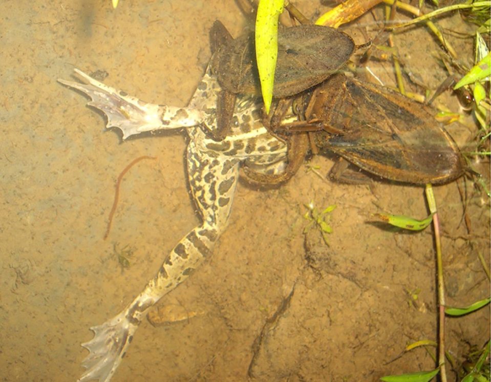 - Serangga air ini memakan serangga lain, tapi juga ikan, ular, kura-kura, dan bahkan itik.