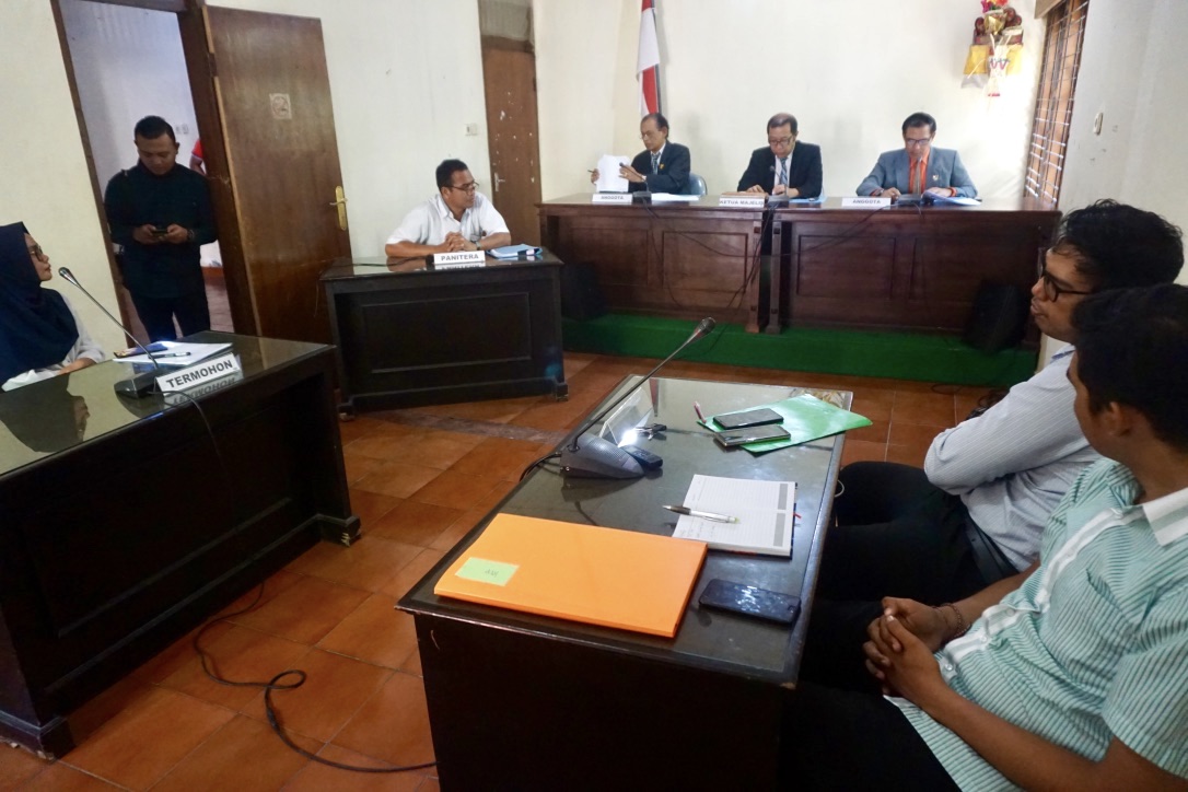 Dalam ruangan sempit yang hanya bisa diisi 5 pengunjung sidang, komisioner KI membacakan putusan setebal 80 halaman secara bergiliran selama lebih 3 jam oleh I Gede Agus Astapa (ketua) dan Ketut Suharya Wiyasa dan I Gusti Ngurah Wirajasa (anggota). Sementara dari pihak termohon sengketa informasi publik, Walhi Bali adalah I Wayan Adi Sumiarta dan Direkturnya I Made Juli Untung Pratama. Sedangkan dari Pelindo III diwakili Astrid Fitria Kasih dan Wilis Aji.