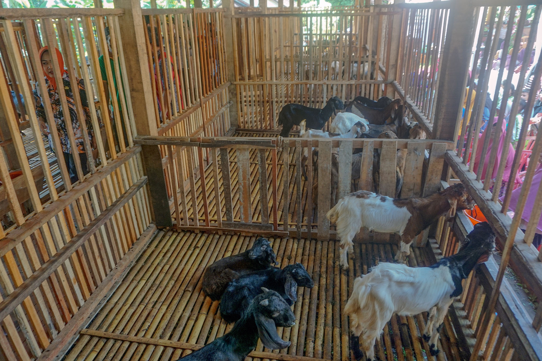 Salah seorang peternak yang juga pengelola kandang komunal, Hasan Ali (62) mengatakan kalau pekerjaan setiap harinya adalah membersihkan kandang, mengumpulkan kotoran kambing serta mencari pakan ternak. “Masing-masing anggota diberi tugas untuk mengurus 30 ekor kambing yang dikandangkan di kandang komunal. Jadi, setiap harinya warga bekerja di sini secara bersama-sama,”kata dia.