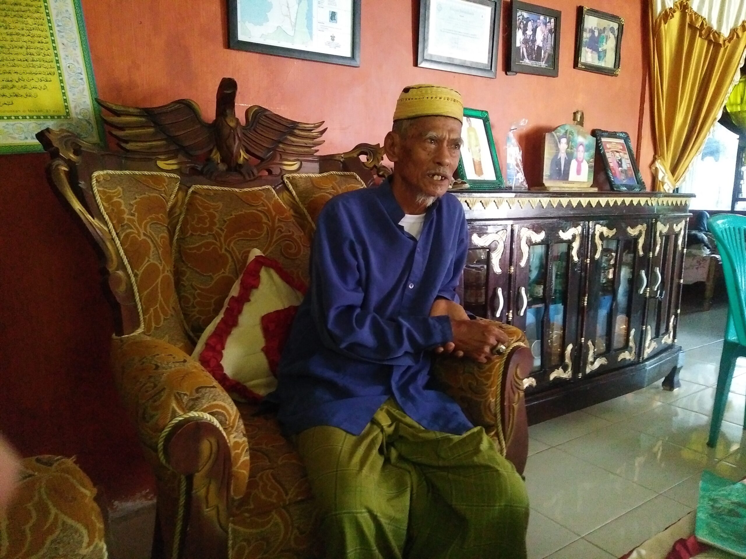 Senyumnya merekah menyambut tamunya, dengan sebuah songkok di kepalanya. Meski sudah berusia lanjut, tetapi Taiyeb masih terlihat segar dari orang seusianya.