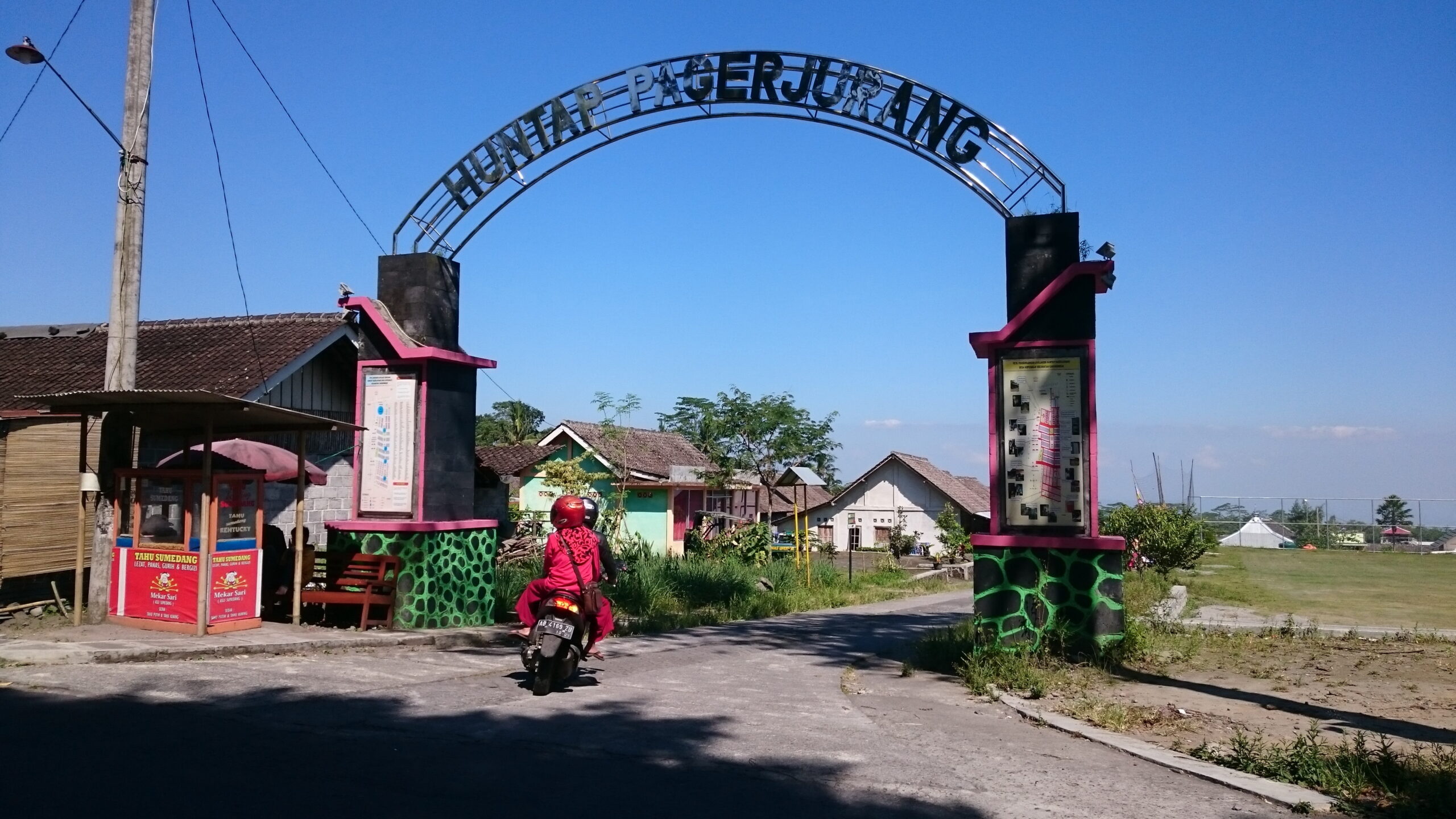 Dia bertugas mengatur keluar masuk kendaraan menuju petilasan Mbah Maridjan. Jalan memang sempit, sedikit menurun, dan berkelok. Sesekali dia menyambut ramah sapaan orang yang naik atau turun sambil membawa rumput.
