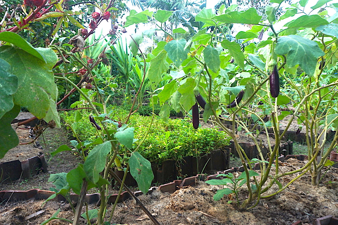 Sayuran yang ditanam untuk daerah kering seperti terong dan pare. Karena mendapatkan sinar matahari penuh, tanaman peneduh yang dipilih adalah buah seperti sawo dan jambu biji. Keduanya memiliki khasiat pada daunnya.