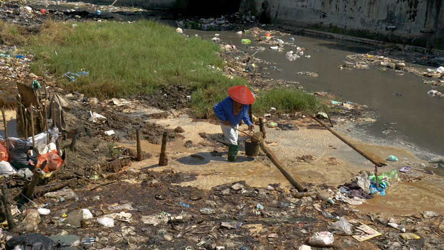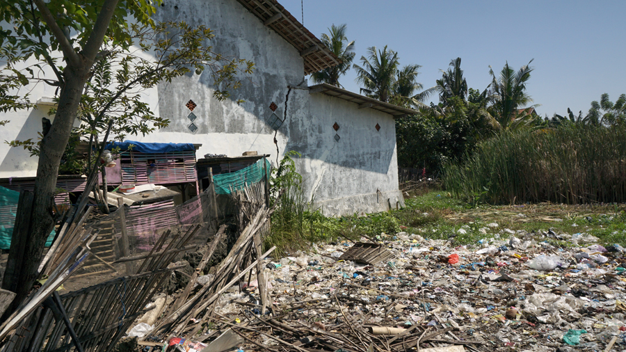 Saking sudah terbiasa dengan serakan sampah, warga setempat tidak terganggu atau ragu lagi hidup berbaur dengan sampah. Anak-anak pun terlihat riang gembira bermain diantara sampah di pesisir.
