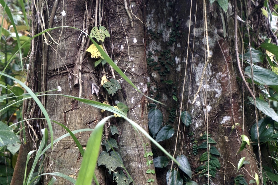 Bibit terlihat ditanam di antara pohon-pohon kayu keras yang menjulang. Namun yang mengagetkan, sejumlah pohon tua besar terlihat goretan, lubang, dan daun-daunnya layu mulai rontok. Batangnya makin layu.