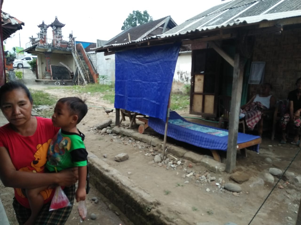 Di kompleks rumahnya, ada sejumlah rumah lain yang juga mengalami kerusakan parah. Misalnya dapur Ni Ketut Meni yang masih hancur sebagian. Jejak banjir sangat jelas dari garis lumpur di seluruh bangunan tersisa, garis cokelat di tembok-tembok. Setinggi leher orang dewasa.