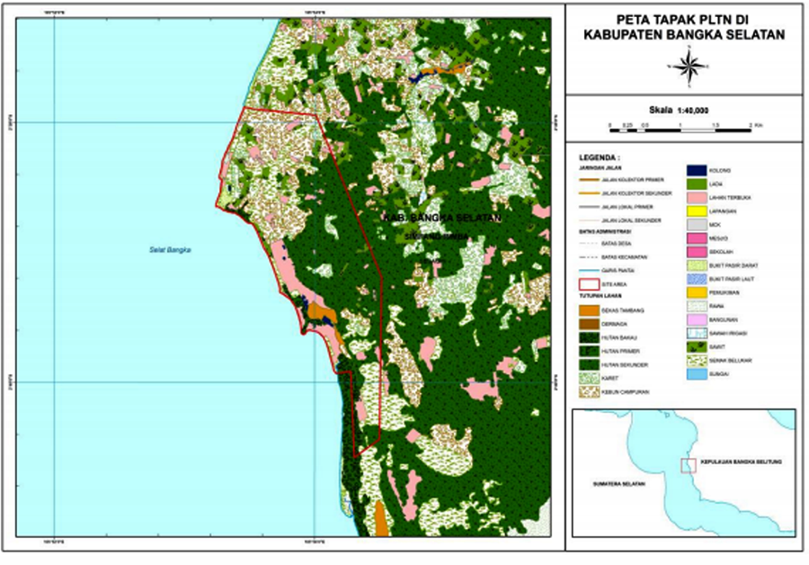 Di Bangka Selatan, calon tapak berada di Kecamatan Simpang Rimba, khususnya di Desa Sebagin.