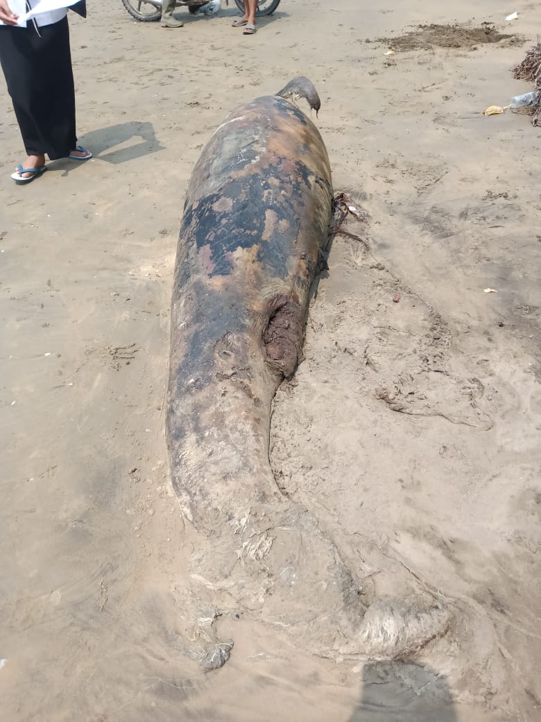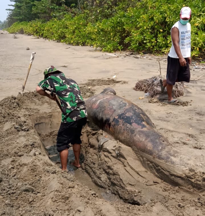 “Bangkai kami kuburkan di lokasi. Paus itu panjangnya 3,2 meter, sudah mengembung sekali perutnya. Sehingga tidak bisa dikubur di darat.