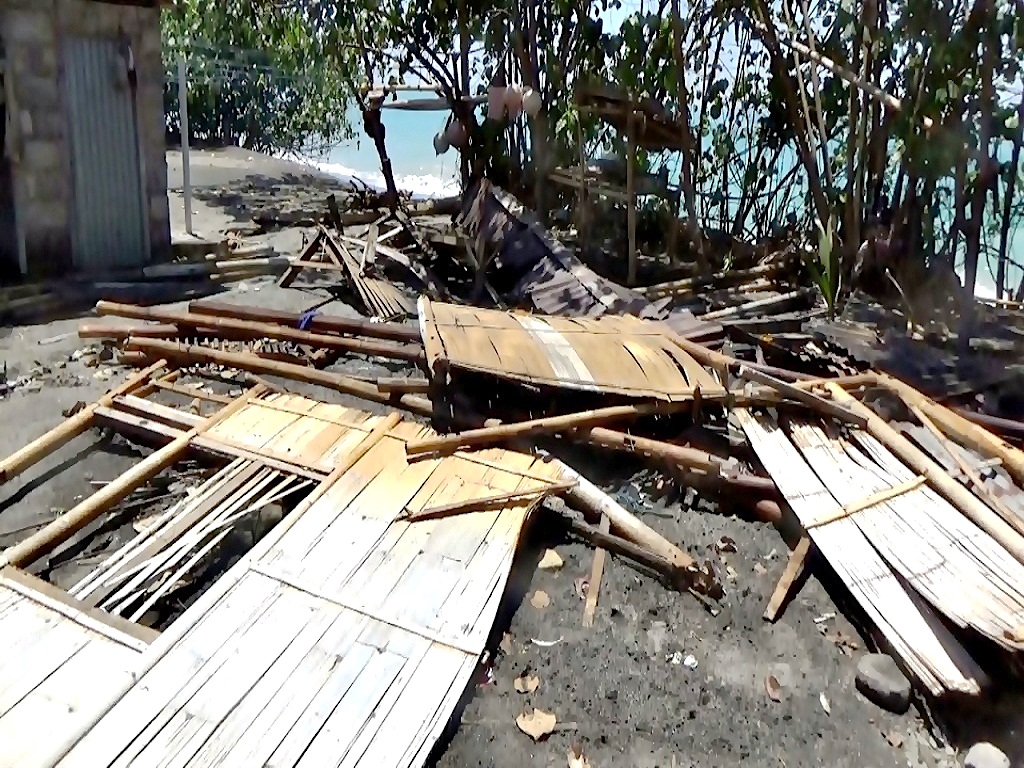 Gelombang tinggi menyebabkan 2 buah rumah hilang terbawa gelombang. merusak puluhan rumah lainnya sepenjang pesisir pantai selatan dan mengancam pemukiman di belasan desa lainnya di 4 kecamatan yakni Paga, Mego, Lela dan Bola.