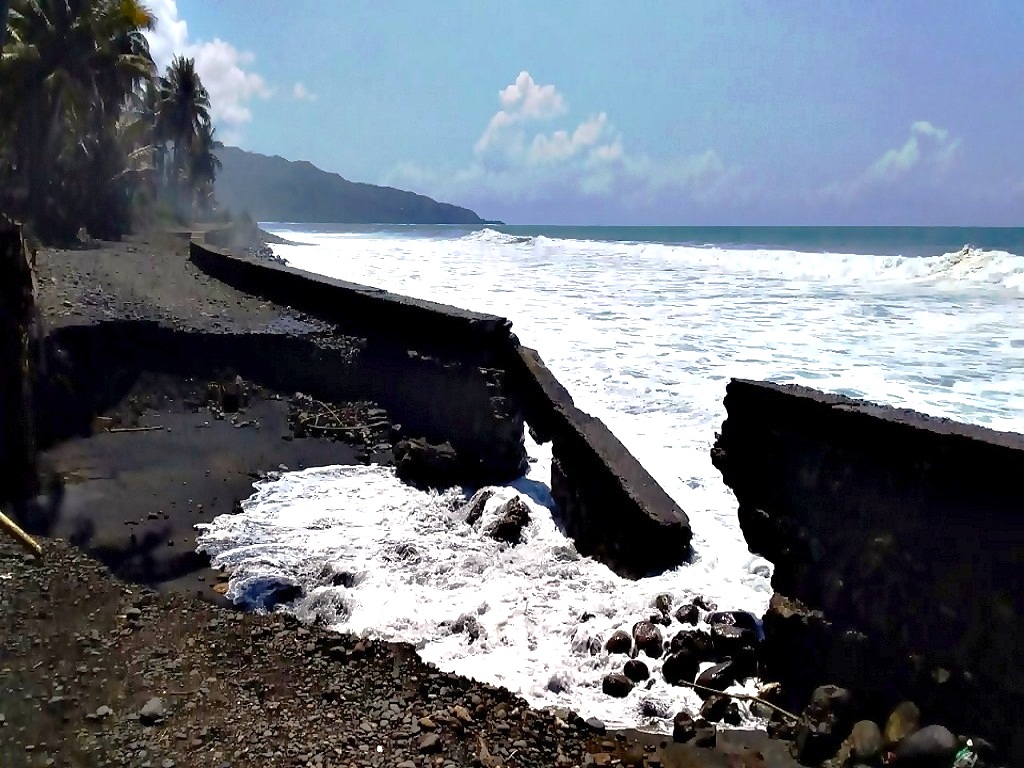 Gelombang pasang dengan ketinggian sekitar 4 sampai 6 meter selalu terjadi hampir setiap tahun. Hantaman gelombang membuat rumah warga terancam rubuh akibat tanah tergerus air laut dan ambruk.