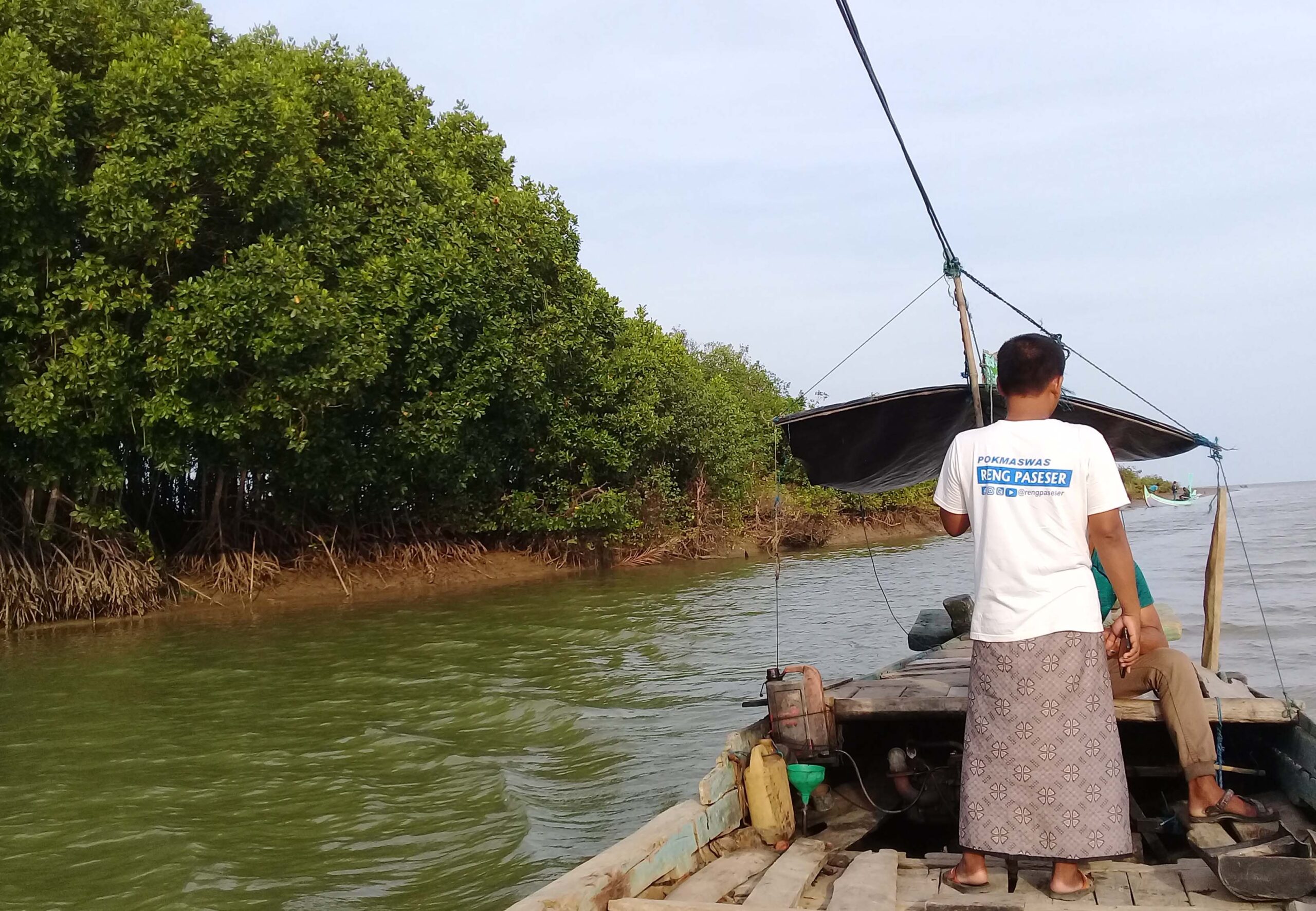 Maskur Riyanto, Ketua Kelompok Masyarakat Pengawas (Pokmaswas) Reng Paseser, yang ikut bersama saya mengatakan, kalau itu tumpahan minyak. Dia sudah melihat sejak beberapa hari lalu tetapi tak tahu dari mana asalnya. “Saya tahu kemarin. Informasinya [minyak] dari tengah, ditelusuri ke tengah. Saya sempat tanya-tanya ke teman, tidak ada yang tahu,” katanya, akhir Oktober lalu.