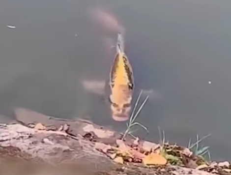 Lewat rekaman video, ikan tersebut tampak memiliki dua mata, hidung, rahang dan mulut seperti layaknya wajah manusia. Dalam video berdurasi 14 detik ini ikan terlihat berenang ke tepi danau dan menjulurkan kepalanya di atas permukaan air.