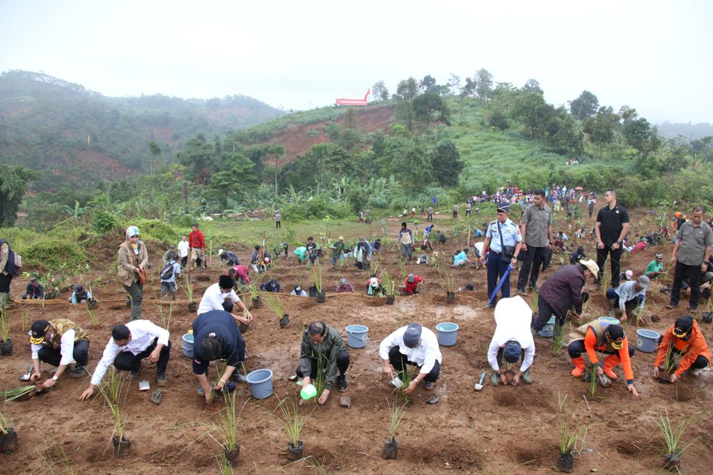 Keterangan foto utama; Rehabilitasi lahan kritis di Kabupaten Bogor, Jawa Barat. Presiden memerintahkan, seluruh instansi pemerintah di pusat maupun daerah (provinsi, kabupaten, kota), harus bersama-sama bersinergi melakukan pencegahan, mitigasi dan meningkatkan kesiapsiagaan bencana. Foto: BNPB