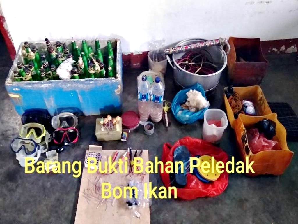 Juga turut disita bahan peledak berupa pupuk yang siap dirakit, 200 kilogram ikan hasil pengeboman berbagai jenis dan ukuran, kabel dan batere alat peledak, korek api, obat nyamuk bakar, 3 unit telepon genggam dan lainnya.