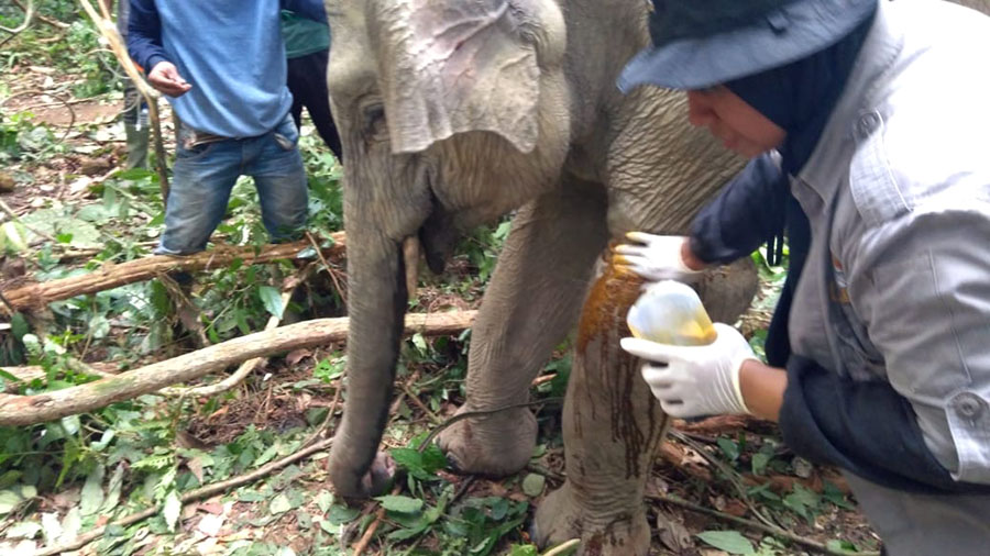 Tim BKSDA Aceh dan dokter dari Fakultas Kedokteran Hewan Universitas Syiah Kuala berhasil mengobati gajah tersebut dan melepaskannya ke hutan.